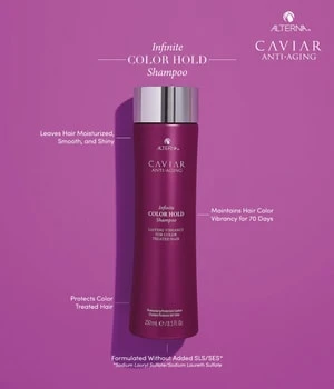 Notre shampooing luxueux nettoie les cheveux colorés tout en restaurant l’hydratation perdue. Il réduit l’affadissement de la couleur et repousse les signes du vieillissement capillaire. La protection solaire supplémentaire confère à votre couleur une vivacité durable et un aspect lisse et brillant.
