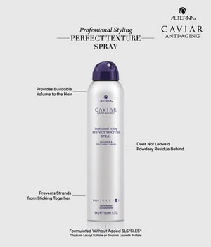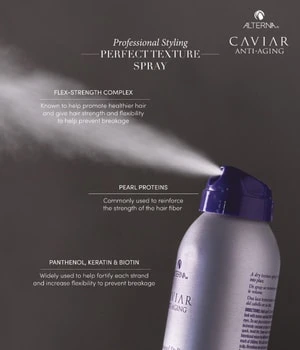 Le spray CAVIAR Perfect Texture Spray est une combinaison de shampooing sec et de laque qui donne du volume, de la forme et de la texture aux cheveux sans être trop poudré ou collant. Ce spray coiffant absorbe le sébum et offre une fixation légère et modulable. Il donne plus de volume aux cheveux pour un fini flexible et défini.
