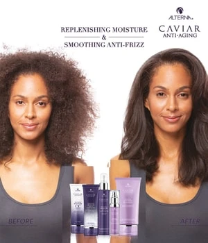 * Basé sur une étude clinique, en utilisant CAVIAR Anti-Aging Smoothing Anti-Frizz Shampoo, Conditioner & Blowout Butter.
