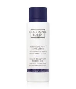 « Cette huile soyeuse de soin intensif vient en complément de la récupération et du renouvellement naturels nocturnes en renforçant et en protégeant les cheveux secs, moyennement épais à épais. Au réveil, les frisottis sont maîtrisés, les longueurs sont profondément nourries et paraissent lisses et brillantes. La fleur de lotus blanc, utilisée pour ses propriétés apaisantes, est présente dans le Monoï de Tahiti qui fond et apporte douceur et brillance aux mèches, tandis que la fibre capillaire est reposée et intensément nourrie au toucher ».