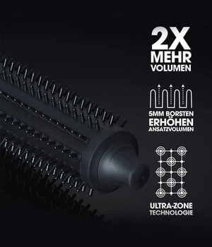 Obtenez deux fois plus de volume et donnez du corps et du rebond à vos cheveux. Les poils lisses de 5 mm vous permettent de coiffer près des racines pour créer un maximum de volume. Pour une glisse en douceur et un coiffage sans traction.* La technologie Smart Ultra-Zone détecte les besoins de vos cheveux et chauffe constamment l’applicateur de 32 mm à la température optimale de 185°C pour un volume durable et d’apparence saine sans chaleur extrême.**