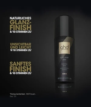 ghd shiny ever after : Le spray brillance de finition donne à vos cheveux une brillance instantanée et dompte également les mèches rebelles et l’électricité statique.*