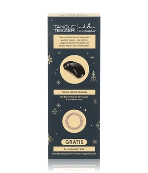 Brosse à démêler Tangle Teezer ORIGINAL en couleur tendance noire Les poils brevetés démêlent et défont sans douleur même les petits nœuds Cheveux mouillés : pour une application facile des produits de soin sous la douche Cheveux secs : pour la brillance et la souplesse Gratuit : élastique invisibobble® SLIM en spirale Dans la couleur tendance ‘bronze me pretty’ Elégant dans les cheveux et au poignet – particulièrement doux pour les cheveux inclus HAIRLOVETECHTM