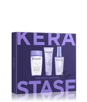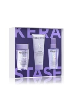 Coffret découverte – vos favoris Kérastase en taille d’essai pour les cheveux blonds, composé d’un bain capillaire hydratant, d’un fondant restructurant et d’une huile traitante avec protection contre la chaleur.