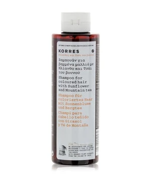 Le shampooing pour cheveux traités chimiquement (coloration, permanente) protège la couleur des cheveux et hydrate les cheveux en profondeur. Le tournesol et le thé des montagnes grecques, riches en polyphénols, préviennent la décoloration prématurée des cheveux et protègent contre les effets des lavages fréquents, du coiffage et du soleil.