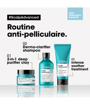 Le shampooing clarifiant Scalp Advanced Anti-Dandruff Dermo-clarifier Shampoo de L’Oréal Professionnel Paris a été spécialement conçu pour les cuirs chevelus sujets aux pellicules. Sa texture légère purifie en douceur et élimine efficacement les pellicules sèches et grasses tout en apaisant le cuir chevelu. Dès les premières applications, l’apparition de pellicules visibles est réduite*.