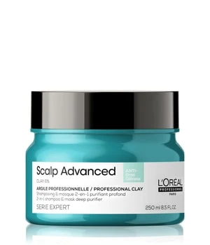 Le shampooing et masque 2 en 1 Scalp Advanced Anti-Oiliness 2in1 Shampoo & Mask deep purifier clay de L’Oréal Professionnel Paris a été spécialement conçu pour les cuirs chevelus gras. Le cuir chevelu est nettoyé intensivement. Dès la première utilisation, les résidus et le sébum sur le cuir chevelu sont réduits de 78 %.*