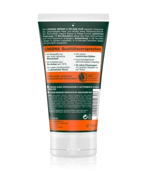 La CURE RÉPARATION & SOIN LOGONA répare les cheveux abîmés et endommagés et les rend résistants. La formule riche et végane Repair & Care d’origine naturelle à l’argousier bio nourrit les cheveux en profondeur et lutte contre la casse.