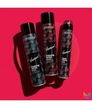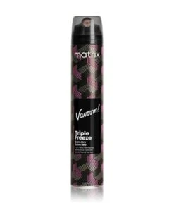 Le Matrix Vavoom Triple Freezing Spray est un spray capillaire à tenue extrêmement forte avec une brume ultra sèche et fine. Il offre un contrôle fort et durable du coiffage sans dessécher ni coller les cheveux.