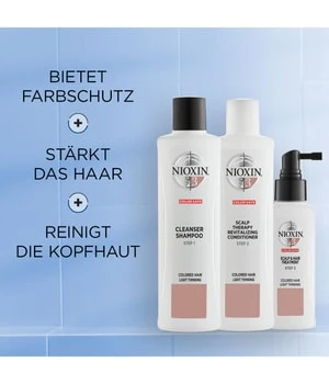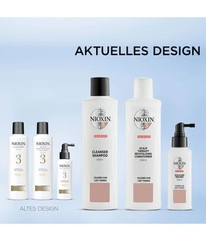 NIOXIN® SHAMPOO: Aqua, Sodium Laureth Sulfate, Sodium Lauryl Sulfate, Citric Acid, Sodium Chloride, PPG2 Hydroxyethyl Coco/Isostearamide, Sodium Citrate, Sodium Xylenesulfonate, Sodium Benzoate, Salicylic Acid, Sodium Hydroxide, Tetrasodium EDTA, Mentha Piperita Oil, Mentha Arvensis Leaf Oil, Menthol, Trisodium Ethylenediamine Disuccinate, Methylparaben, Polyquaternium10, Propylene Glycol, Camellia Sinensis Leaf Extract, Cystine BisPGPropyl Silanetriol, Biotin, Lecithin, Niacinamide, Panthenol, Tocopheryl Acetate, Foeniculum Vulgare Fruit Extract, Sodium Acetate, Isopropyl Alcohol, Faex Extract, CI 42090, Acer Saccharum Extract, Citrus Limon Peel Extract, Saccharum Officinarum Extract, Vaccinium Myrtillus Leaf Extract, Citrus Aurantium Dulcis Fruit Extract, Potassium Sorbate CONDITIONER: Aqua, Cetyl Alcohol, Stearamidopropyl Dimethylamine, Quaternium18, Stearyl Alcohol, BisAminopropyl Dimethicone, Hydroxyethylcellulose, Phenoxyethanol, Benzyl Alcohol, Cetearyl Alcohol, Mentha Piperita Oil,Mentha Arvensis Leaf Oil, Menthol, Glyceryl Stearate, Oleyl Alcohol,Methylparaben, PEG2M, Propylparaben, Polysorbate 60, EDTA, Citric Acid, Propylene Glycol, Limonene, Camellia Sinensis Leaf Extract, Silica, Cystine BisPGPropyl Silanetriol, Biotin, Lecithin, Niacinamide, Panthenol, Tocopheryl Acetate, Foeniculum Vulgare Fruit Extract, Faex Extract, BHT, Acer Saccharum Extract, Citrus Limon Peel Extract, Saccharum Officinarum Extract, Vaccinium Myrtillus Leaf Extract, Citrus Aurantium Dulcis Fruit Extract, Potassium Sorbate, Sodium Benzoate TREATMENT: Aqua, Niacinamide, Caffeine, Phenoxyethanol, Sodium Benzoate, Benzyl Alcohol, Acrylates/C1030 Alkyl Acrylate Crosspolymer, Polysorbate 60, Polysorbate 80, Acetamide MEA, Triethanolamine, PEG23M, Tetrasodium EDTA, Propylene Glycol, Methyl Nicotinate, Parfum, PEG30 Dipolyhydroxystearate, Mentha Piperita Oil, Mentha Arvensis Leaf Oil, Menthol, Trideceth6, Camellia Sinensis Leaf Extract, Limonene, Silica, Cystine BisPGPropyl Silanetriol, Biotin, Lecithin, Tocopheryl Acetate, Foeniculum Vulgare Fruit Extract, Faex Extract, Acer Saccharum Extract, Citrus Limon Peel Extract, Saccharum Officinarum Extract, Vaccinium Myrtillus Leaf Extract, Citrus Aurantium Dulcis Fruit Extract, Potassium Sorbate