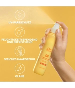 Protégez vos cheveux avant et pendant une exposition au soleil avec le spray protecteur Wella Professionals Sun. La formule innovante biphasée de ce spray de qualité professionnelle offre à vos cheveux un « bouclier de protection » contre le soleil tout en les nourrissant. La phase 1 contribue efficacement à protéger vos cheveux des rayons UV, tandis que la phase 2 les hydrate intensément grâce à un complexe de vitamines. L’après-shampoing Wella Sun laisse vos cheveux sains, brillants et souples.
